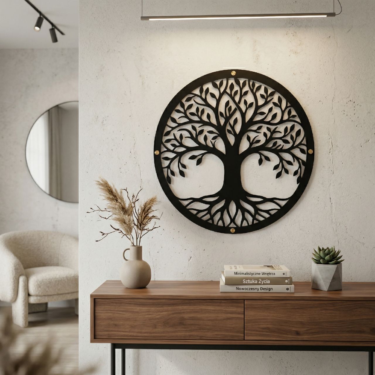 Szukasz dekoracji, która jest czymś więcej niż tylko ładnym dodatkiem? Nasz metalowy obraz ścienny „Drzewo Życia” to połączenie nowoczesnego designu z ponadczasową symboliką, która nada Twojemu wnętrzu unikalnego, głębokiego charakteru.