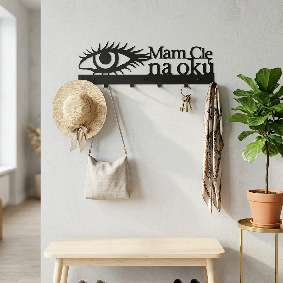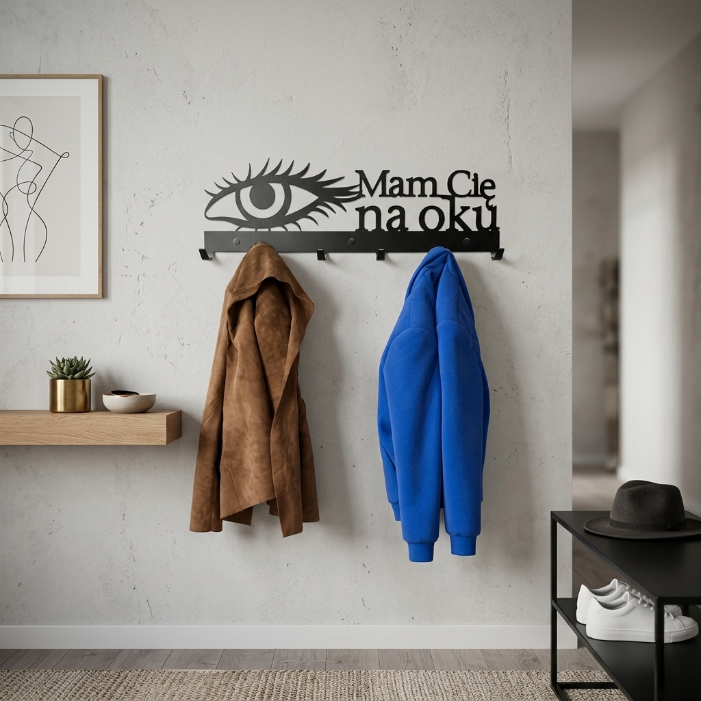Dodaj swojemu domowi odrobinę humoru i nowoczesnego designu z wieszakiem na ubrania Mam cię na oku. Ten wyjątkowy metalowy wieszak ścienny, ozdobiony żartobliwym hasłem „Mam cię na oku”, to idealny wybór dla osób, które chcą połączyć funkcjonalność z zabawnym akcentem. Zaprojektowany z myślą o miłośnikach unikalnych dekoracji i lekkiego podejścia do aranżacji, ten wieszak do przedpokoju z kategorii wieszaki na ubrania doskonale sprawdzi się w przedpokoju, salonie, biurze czy przestrzeni komercyjnej, dodając wnętrzu charakteru i elegancji. Zobacz jak nasze produkty prezentują się u klientów -> Galeria zdjęć od klientów