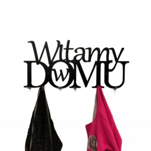 Wieszak na ubrania wycięty laserowo z metalu. Dostępny w różnych rozmiarach i kolorach.