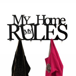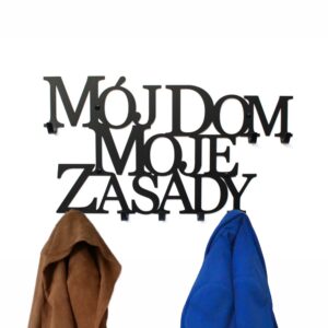 Wieszak ścienny na ubrania wycięty laserowo z metalu. Dostępny w różnych rozmiarach i kolorach.