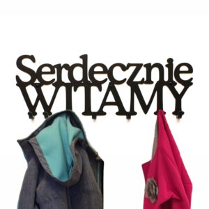 Wieszak na ubrania wycięty laserowo z metalu. Dostępny w różnych rozmiarach i kolorach.